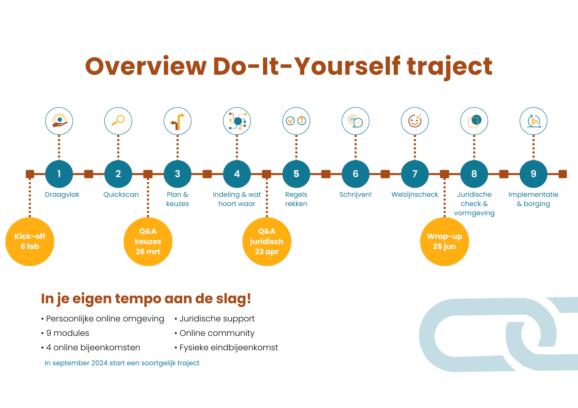 Het Do-It-Yourself traject duurt vier maanden. Er start een groep in februari 2024 en een groep in september 2024. Aan deelname zijn geen kosten verbonden.